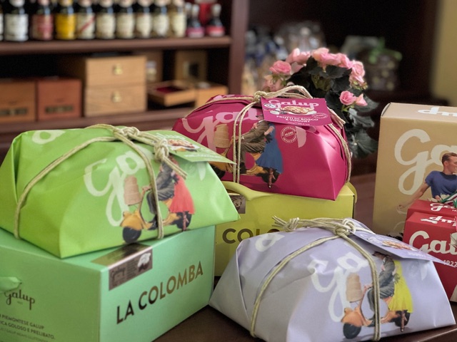The Colomba cakes are slowly leavened like panettone and finished with a crunchy almond and sugar topping. Shaped like a dove, they symbolize peace. Alongside the classic flavor, popular variations include pear-chocolate and chocolate-pistachio!